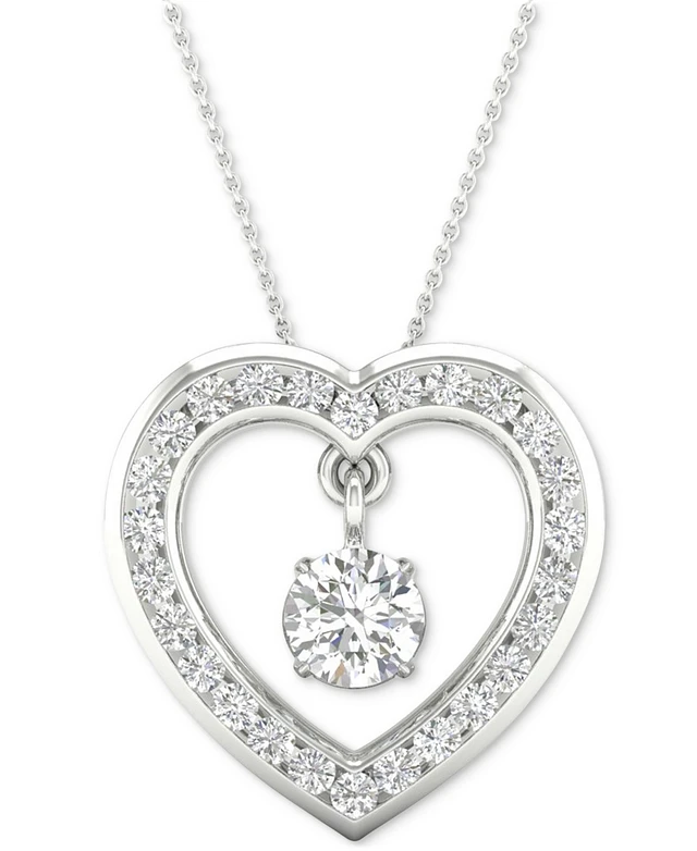 Diamond Heart Pendant Necklace (1 ct. t.w.) in 14k White Gold, 16" + 2" extender