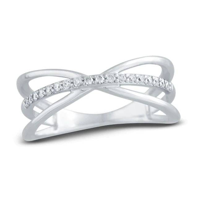 Diamond Pave Bypass Ring 1/8 ct tw Round-cut Sterling Silver