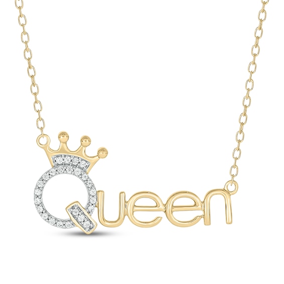 Diamond "Queen" with Crown Necklace 1/10 ct tw 10K Yellow Gold 18"