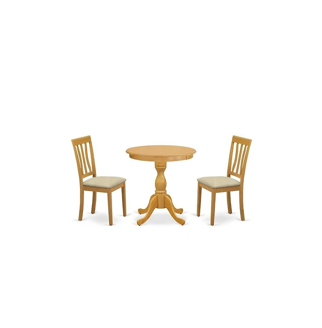 East West Furniture 3-Pc Dining Table Set with 2 Upholstered Dining Chairs and 1 Kitchen Table (Oak Finish)