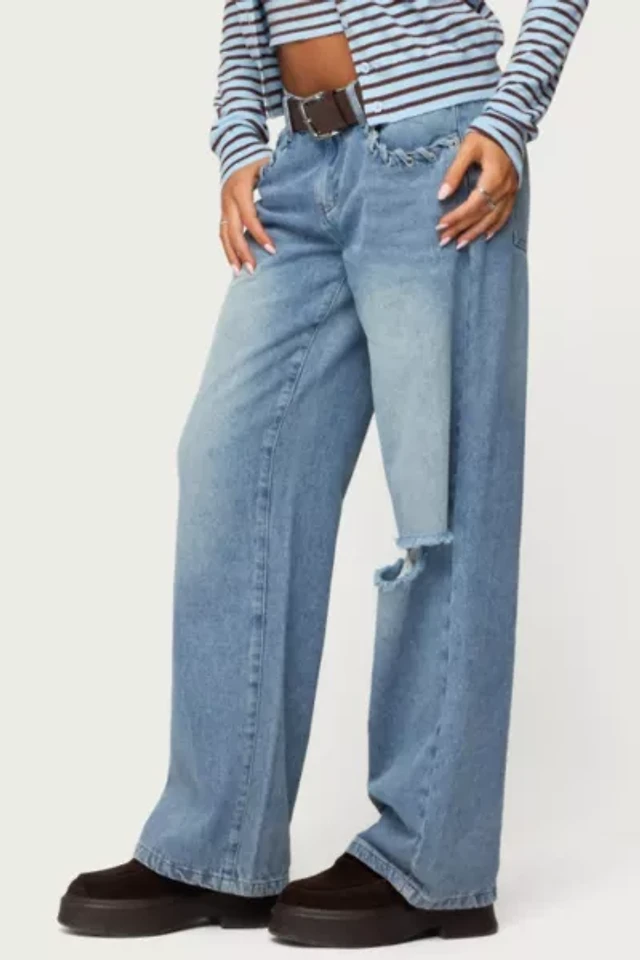 Edikted Slitted Distressed Low Rise Jeans