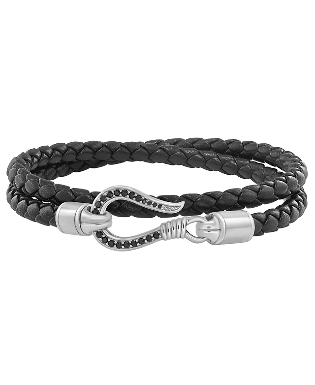Effy Men's Black Spinel Braided Leather Bracelet in Sterling Silver