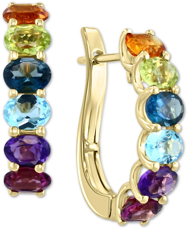 Effy Multi-Gemstone (9-1/3 ct. t.w.) & Diamond (1/10 ct. t.w.) Small Hoop Earrings in 14k Gold, 1"