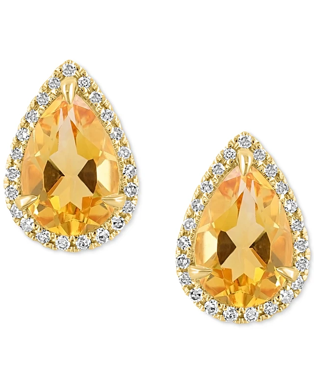 Effy Pear-Shape Citrine (2-5/8 ct. t.w.) & Diamond (1/6 ct. t.w.) Halo Stud Earrings in 14k Yellow Gold