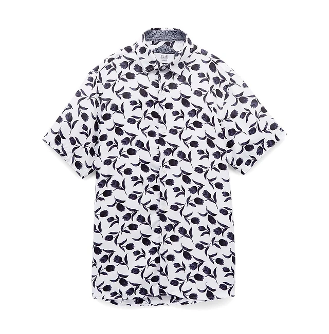 Elie Balleh Big Boys White Floral Print Slim Fit Short Sleeve Shirt