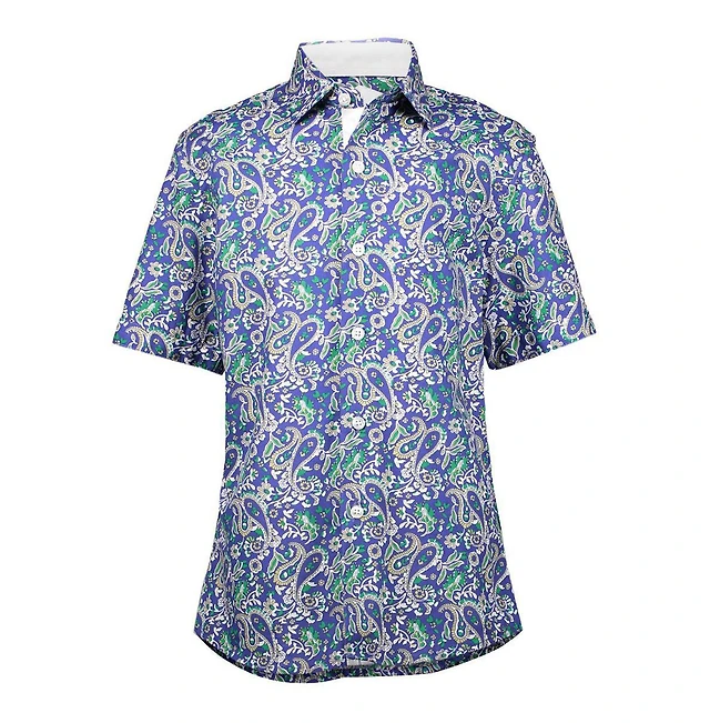 Elie Balleh Big Boys Blue Paisley Slim Fit Short Sleeve Shirt