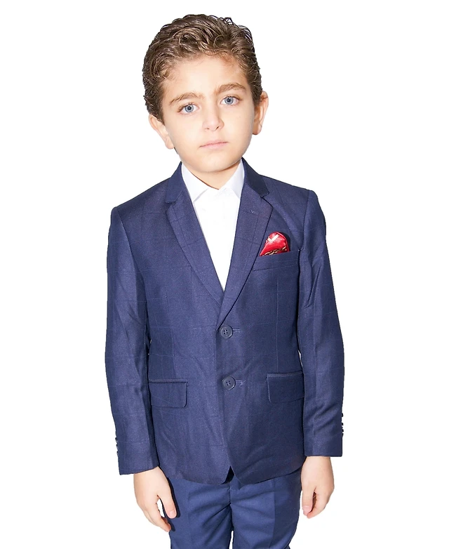Elie Balleh Boys Navy Slim Fit Windowpane Jacket