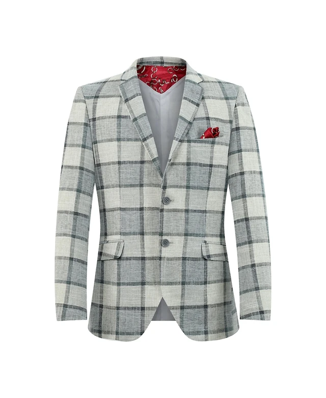 Elie Balleh Boys Grey Slim Fit Windowpane Plaid Blazer