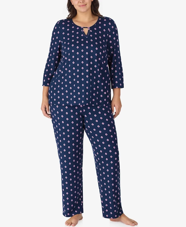 Ellen Tracy Plus Size 2-Piece 3/4-Sleeve Top and Pants Pajama Set