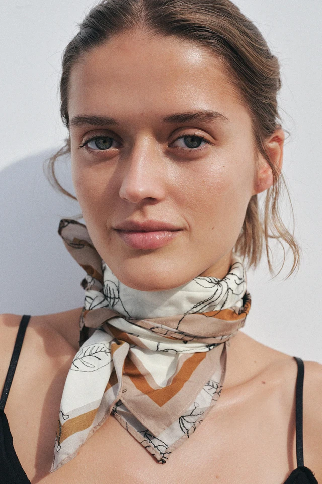 CROCHET SCARF WITH EMBROIDERED FLOWERS