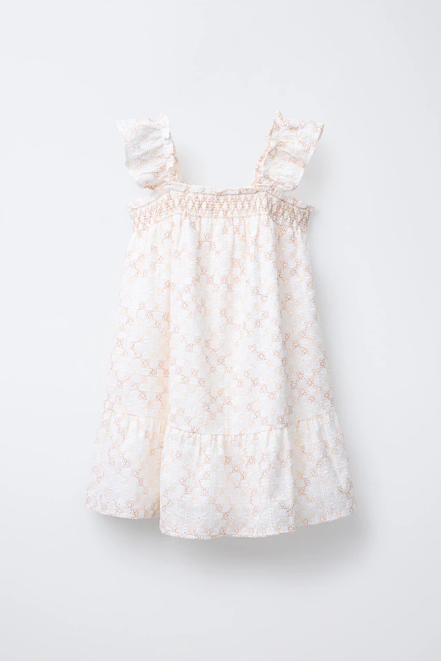 EMBROIDERED RUFFLE DRESS