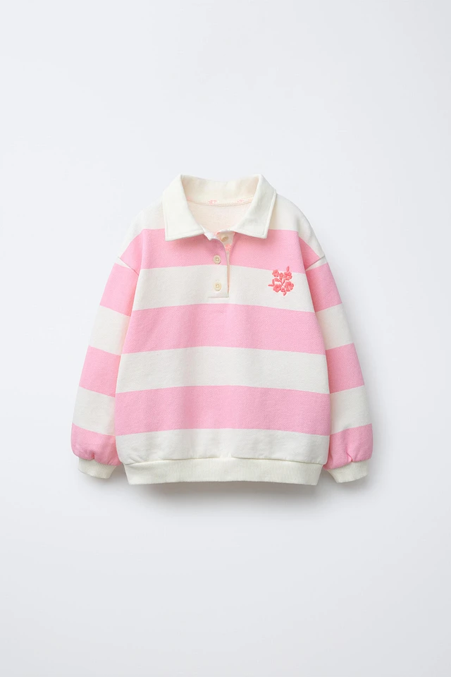 EMBROIDERED STRIPE POLO SWEATSHIRT