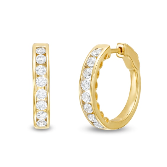 2 CT. T.w. Diamond Channel Eight Stone Hoop Earrings in 14K Gold