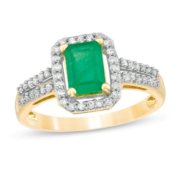 Emerald-Cut Emerald and 1/15 CT. T.w. Diamond Ring in 10K Gold