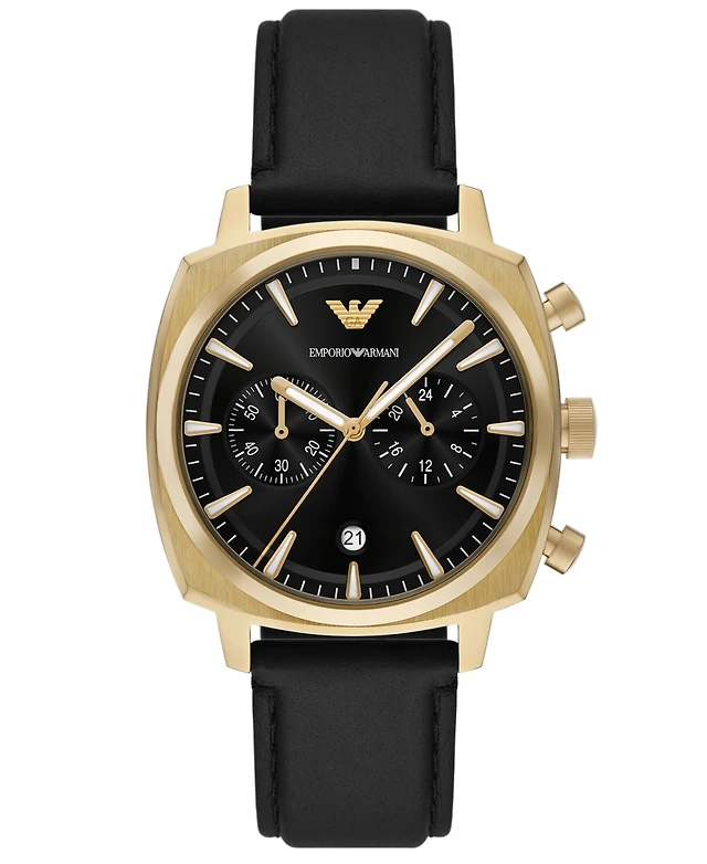 Emporio Armani Men's Chronograph Black Leather Strap Watch 40mm