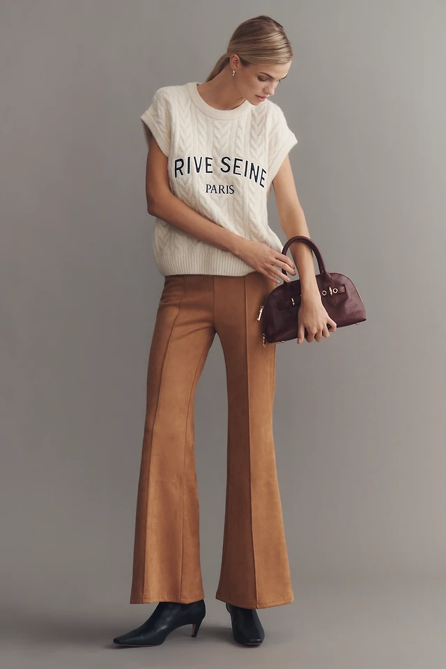 Ann Taylor The Side Zip Flare Pant in Faux Suede Size 4 Chocolate Mousse Women's
