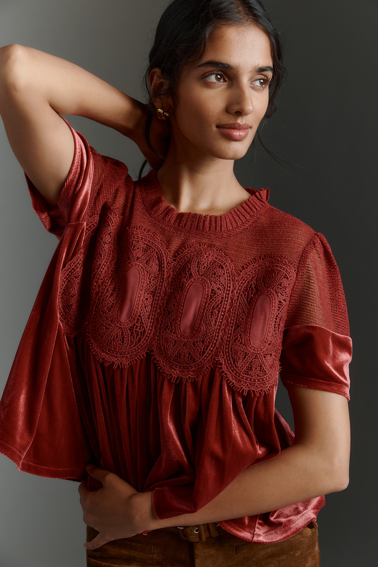 En Elly Velvet Scallop Top