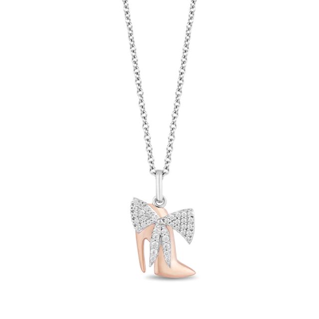 Enchanted Disney Villains Cruella De Vil 1/6 CT. T.w. Diamond Shoe Pendant in Sterling Silver and 10K Rose Gold - 19"