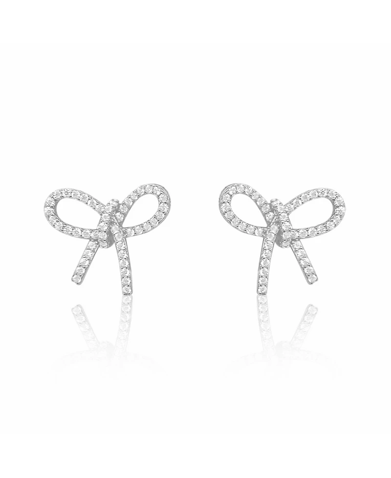Delicate bow-shaped studs crafted in sterling silver and adorned with sparkling cubic zirconia stones. These refined earrings offer timeless elegance with a modern twist, perfect for adding a touch of sophistication to any occasion. The secure stud design ensures comfortable, all-day wear, while the brilliant sparkle catches light beautifully. An understated yet striking accessory that complements both casual and formal ensembles with effortless grace.