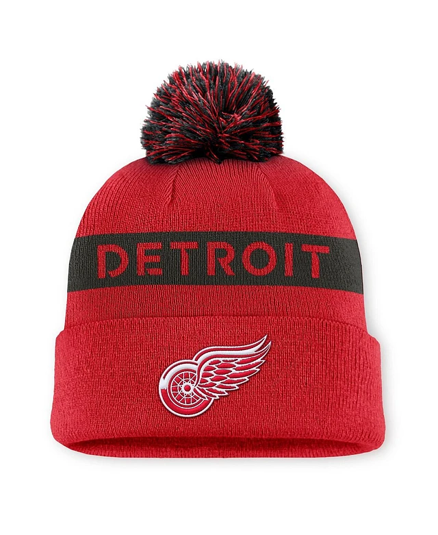 Fanatics Men's Red Detroit Red Wings Core Primary Logo Cuffed Knit Hat with Pom