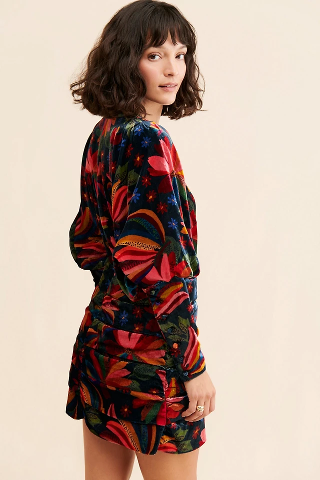 Farm Rio x Anthropologie Puff-Sleeve Velvet Mini Dress