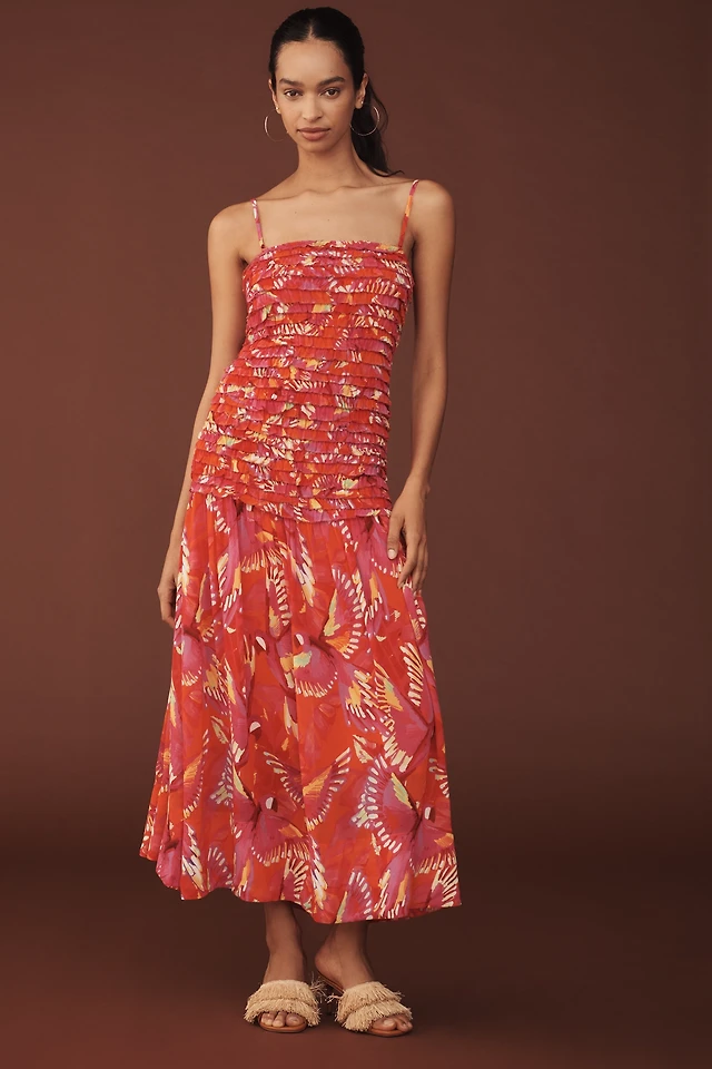 Farm Rio Shirred Drop-Waist Midi Dress