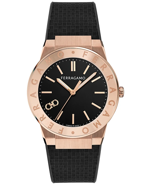 Ferragamo Men's Swiss Black Polyurethane Strap Watch 41mm