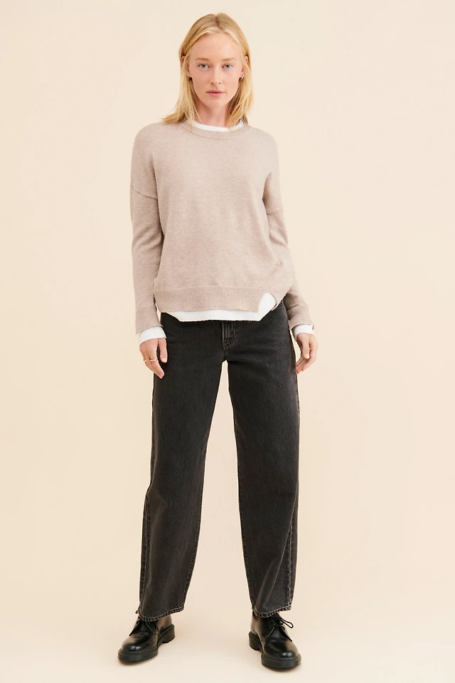 Flat White Cozy Crew-Neck Cardigan Sweater