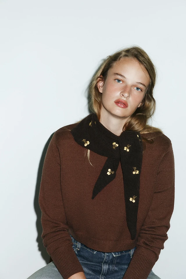 KNIT SCARF WITH FLORAL EMBROIDERY