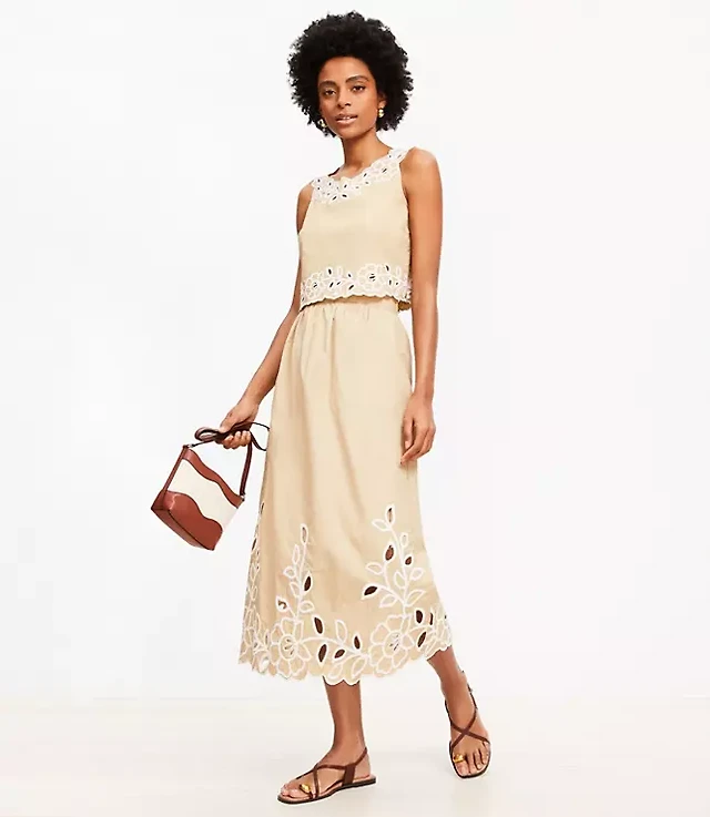 Floral Eyelet Stripe Poplin Pull On Maxi Pocket Skirt
