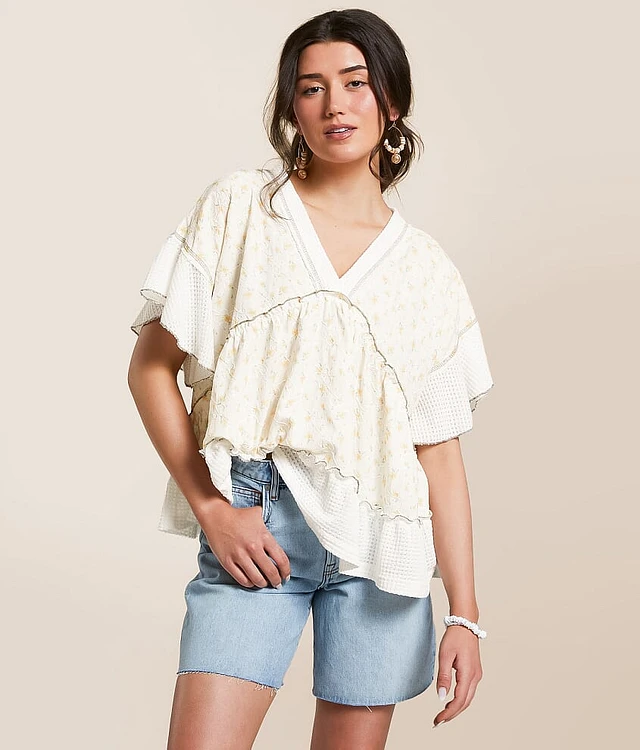 Floral Pointelle Babydoll Top