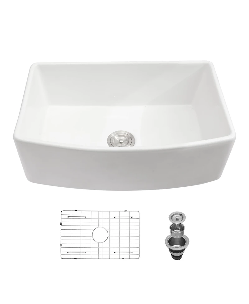 flynama 33x19x10inch White Farmhouse Sink Porcelain Ceramic Arch Edge Apron Front Single Bowl