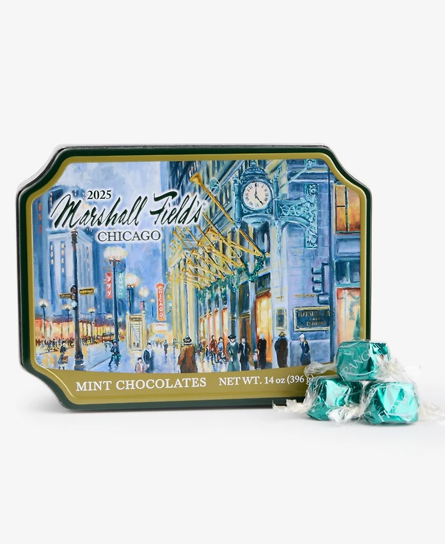 Frango Chocolates Marshall Field's Holiday Clock Tin Milk Mint Chocolates, 14 Oz