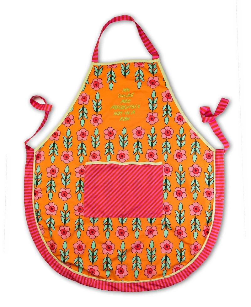 For the ones who know that life s a little messy. This apron is for those who say, My ducks are absolutely not in a row, because who has time for perfect when you re just trying to survive the chaos?Cooking made chic - this pretty printed apron elevates the everyday and adds a colorful charm to your kitchen. Handmade in India, the cheery color combo and the striped trim make a bold statement.