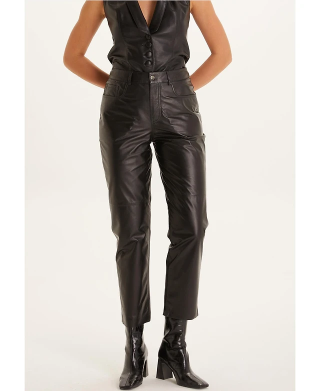 Furniq Uk Women's Leather Fashion Pants, Black