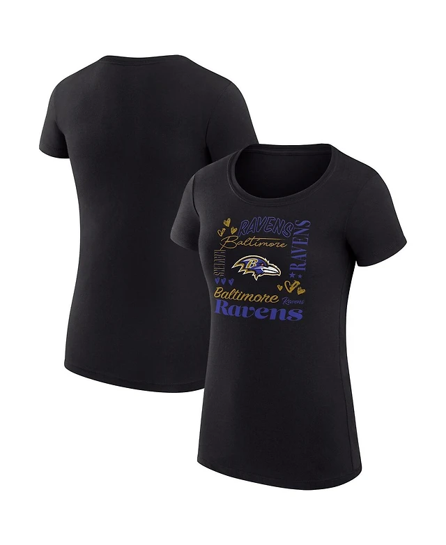 G-iii 4Her by Carl Banks Women's Black Baltimore Ravens Super-Slim Fit Lightweight Collage Team T-Shirt