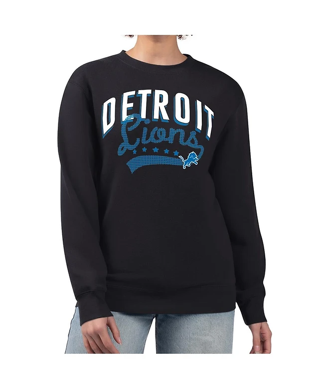 G-iii 4Her by Carl Banks Women's Black Detroit Lions Filigree Logo Graphic Fleece Pullover Sweatshirt
