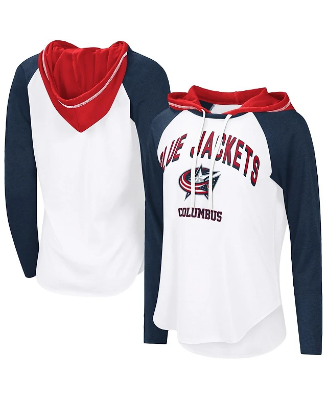 G-iii 4Her by Carl Banks Women's White/Navy Columbus Blue Jackets Vip Raglan Long Sleeve Hoodie T-Shirt