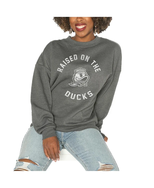 Gameday Couture Women's Charcoal Oregon Ducks Drop Shoulder Fleece Drop Pullover Sweatshirt
