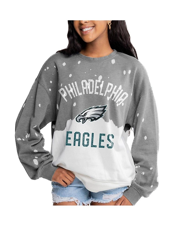 Gameday Couture Women's Gray Philadelphia Eagles Oversized Coin Toss Faded French Terry Tri-Blend Pullover Sweatshirt