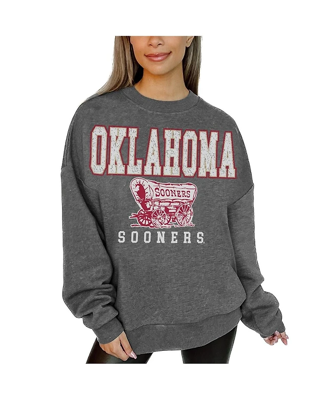 Gameday Couture Women's Heather Charcoal Oklahoma Sooners Distressed Fleece Pullover Sweatshirt
