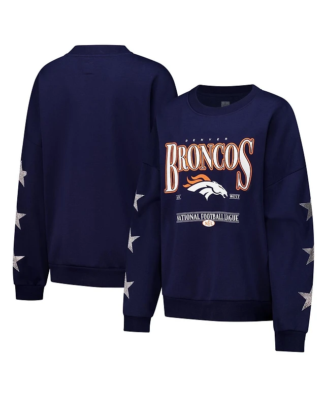 Gameday Couture Women's Navy Denver Broncos Rhinestone Star Sleeve Settle the Score Tri-Blend Pullover