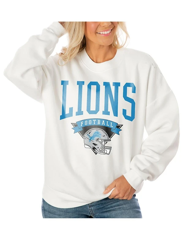 Gameday Couture Women's White Detroit Lions Oversized Line Pullover Sweatshirt
