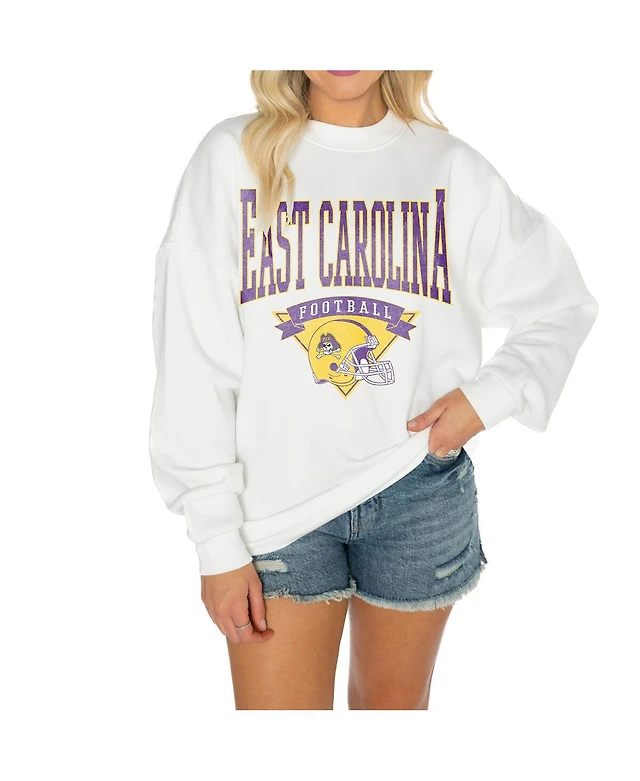 Gameday Couture Women's White Ecu Pirates Good Vibes Premium Fleece Drop Shoulder Pullover Sweatshirt