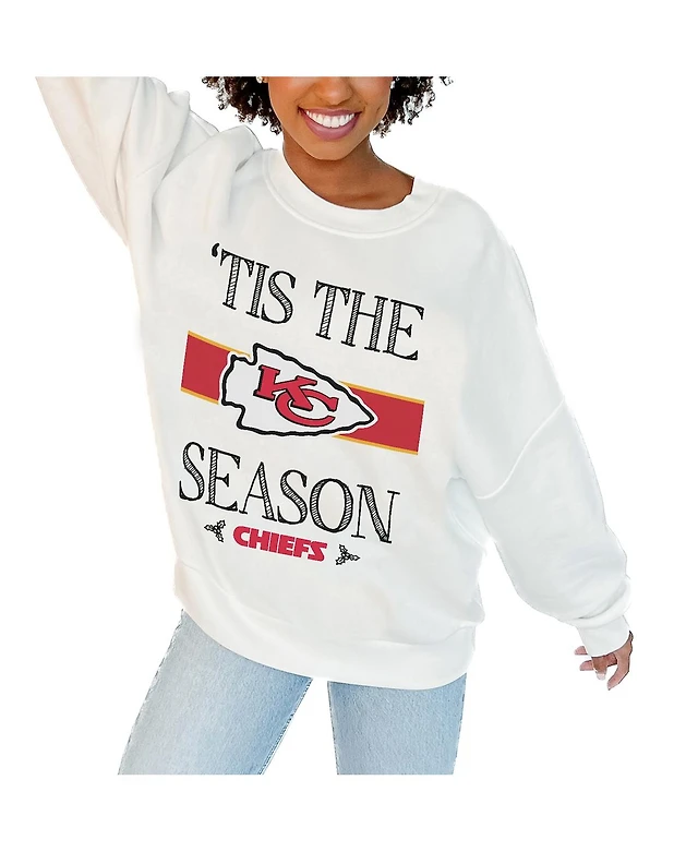 Gameday Couture Women's White Kansas City Chiefs Oversized Take a Holiday Pullover Sweatshirt