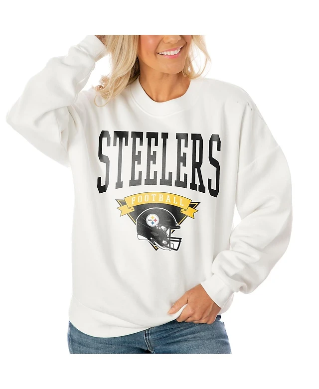 Gameday Couture Women's White Pittsburgh Steelers Oversized Yard Line Tri-Blend Pullover Sweatshirt