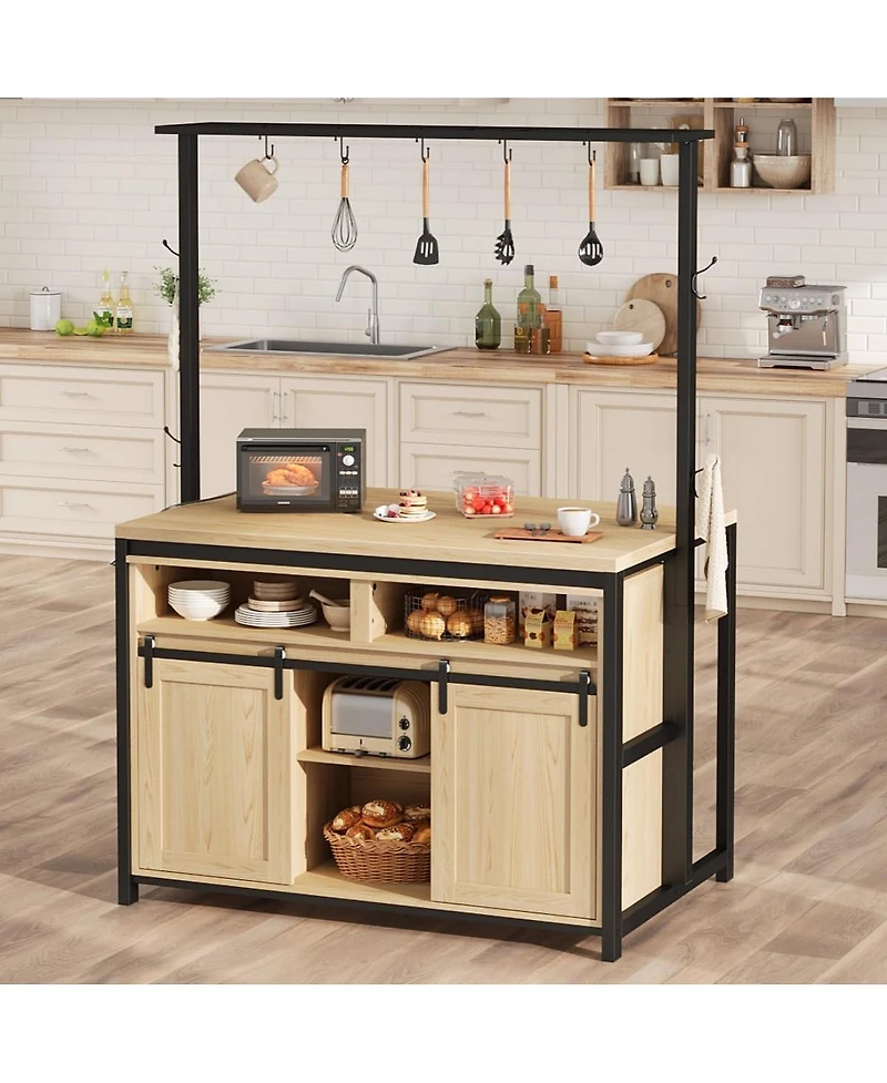 gaomon 42" Kitchen Island with Power Outlet, Rustic Wood Coffee Bar, Sliding Barn Door, 9 Hooks, Open Shelves & Mobile Storage Cabinet in Bloomington, MN