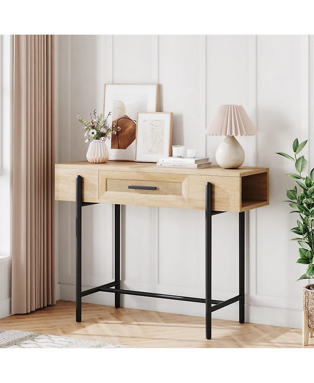 gaomon Console Table Rattan Sofa Tables Narrow Entryway Table with Drawer and Storage