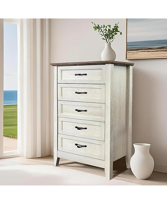 Gaomon Farmhouse 5 Drawer Dresser, 44" Tall White Wood Chest with Bar Handles and Rustic Texture for Bedroom, Living Room, Entryway