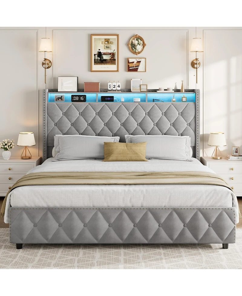 Gaomon King Bed Frame with 50.8" Tall Headboard, Platform Velvet Upholstered Bed Frame with 4 Storage Drawers in Bloomington, MN